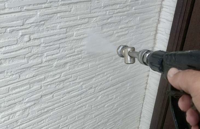 高圧洗浄機を使う場合でも、外壁材や塗膜を傷つけないよう、水圧を調整しながら丁寧に洗浄します。
