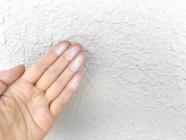 外壁を指で軽く触ったときに、外壁の色と同じ色の粉がつく現象です。これは塗膜が紫外線によって分解され、顔料(色のもと)が粉となって表面に出てきているサインで、防水機能が低下している状態です。