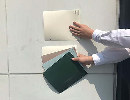 塗料メーカーの色見本は、基本的に室内の標準的な照明環の下で見ることになります。しかし、外壁は常に自然光にさらされており、太陽光の角度や強さによって色が持つ印象は大きく変化します。