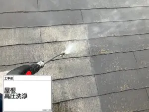 屋根は藻が発生していた為入念に高圧洗浄していきます
