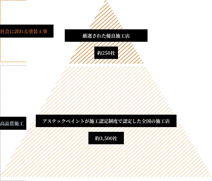 アステックペイントが施工方法などの技術的な指導を実施し「施工品質」と「品質管理」の両面で安心して消費者へ塗装をご提供できる施工店のみが取り扱いできる特別な塗料です。